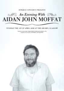 The first sign of a slightly drunken and rushed reviewer is the lack of the second most important piece of equipment required to make notes. As I sat down in the beautifully candle lit Arches I had my pen but paper was a severely lacking, so I ended up having to scribble on the back of three receipts and a ticket stub (I guess its obvious I was never a boy scout). The Arches was set up with tables covered in tea light candles providing the perfect relaxed atmosphere for Mr Moffat to come on stage and throw a few choice expletives at us. Three red lights flashed across the stage as the bearded wonder emerged to greet us with a simple “Hello”. He settled down on his stool, took out his noise-box and placed his sheets of lyrics on a stand in front of him before explaining a few things to the crowd in true Aidan Moffat style. “Lets not beat around the bush I’m here because I’ve got an album out” Moffat joked in his deep relaxed Scottish drawl. He went on to say in an ever so slightly sarcastic tone “I’ve never sung these to anyone before so I hope you realise how lucky you are”. His latest effort under his full name Aidan John Moffat is essentially a spoken word album backed by different programmed soundscapes and noises that for live purposes emanated from a box on Aidan’s lap.